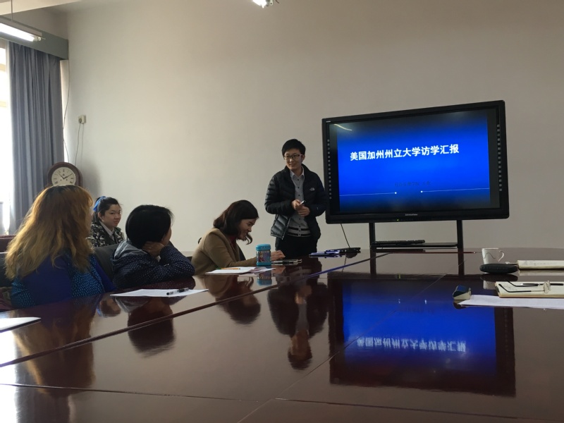 王歡老師訪問的是美國加州州立大學(xué)富勒頓分校,研修專業(yè)是教育學(xué)和工商企業(yè)管理,她主要從專業(yè)課、教法課和跨文化交流課等方面做了匯報,以及參加各種交流活動,內(nèi)容涉及美國高等教育的發(fā)展及歷史、領(lǐng)導(dǎo)力的培養(yǎng)、課程設(shè)計(jì)、文化多元性、如何設(shè)計(jì)科研課題等。最后她用十五個字對本次研修做了個人總結(jié):知識的豐富,思想的洗禮,心靈的震撼,理念的革新,發(fā)展的特色。