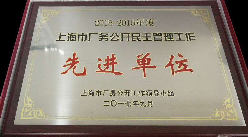 經(jīng)組織申報(bào)、嚴(yán)格評(píng)審、公示,上海市廠務(wù)公開領(lǐng)導(dǎo)小組授予我?!?/span>2015-2016年度上海市廠務(wù)公開民主管理工作先進(jìn)單位”。