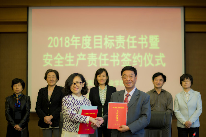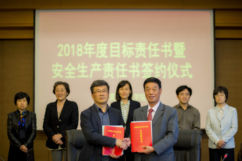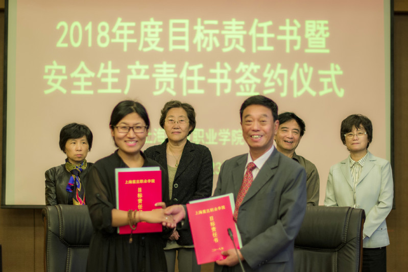 陳力華校長與各二級學(xué)院院長、機(jī)關(guān)科室負(fù)責(zé)人簽訂責(zé)任目標(biāo)書,黃晞建書記與黨委各部門簽訂責(zé)任目標(biāo)書。
