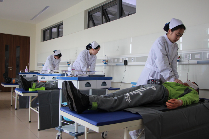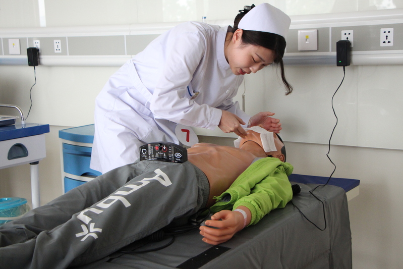趙佩君院長(zhǎng)賽前致辭:“心肺復(fù)蘇,是每個(gè)醫(yī)護(hù)人員必須掌握的急救技能,是一個(gè)基本功,是護(hù)理技能操作比賽三個(gè)項(xiàng)目之一,希望同學(xué)們珍惜這次比賽的機(jī)會(huì),學(xué)習(xí)鞏固動(dòng)作要領(lǐng),勤學(xué)苦練,積累經(jīng)驗(yàn),為今后的臨床實(shí)踐打下扎實(shí)的基礎(chǔ)?!?校長(zhǎng)陳力華、校黨委書(shū)記黃晞建、校辦主任張莉觀摩了這次比賽。護(hù)理專(zhuān)業(yè)的同學(xué)在現(xiàn)場(chǎng)觀摩學(xué)習(xí)。