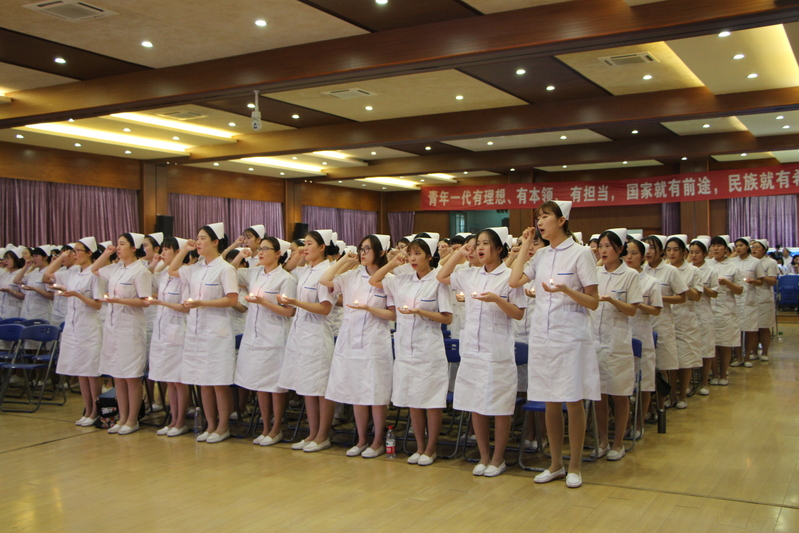 隨后所有護(hù)理專業(yè)的同學(xué)們,手捧蠟燭,在曹婷老師帶領(lǐng)下,在南丁格爾的畫相面前莊嚴(yán)宣誓:“余謹(jǐn)以至誠,于上帝及會(huì)眾面前宣誓:終身純潔,忠貞職守,盡力提高護(hù)理之標(biāo)準(zhǔn);勿為有損之事,勿取服或故用有害之藥;慎守病人家務(wù)及秘密,竭誠協(xié)助醫(yī)生之診治,務(wù)謀病者之福利?!?/span>