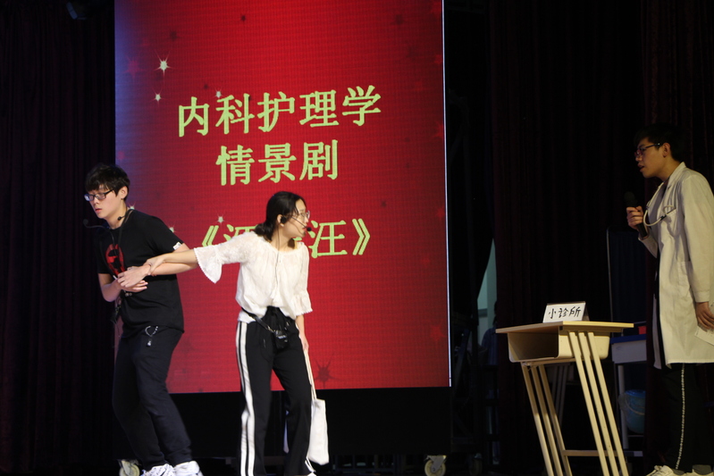 16級(jí)護(hù)理專業(yè)同學(xué)獻(xiàn)上了內(nèi)科情景劇《汪汪汪》和外科情景劇《生命的續(xù)航》。