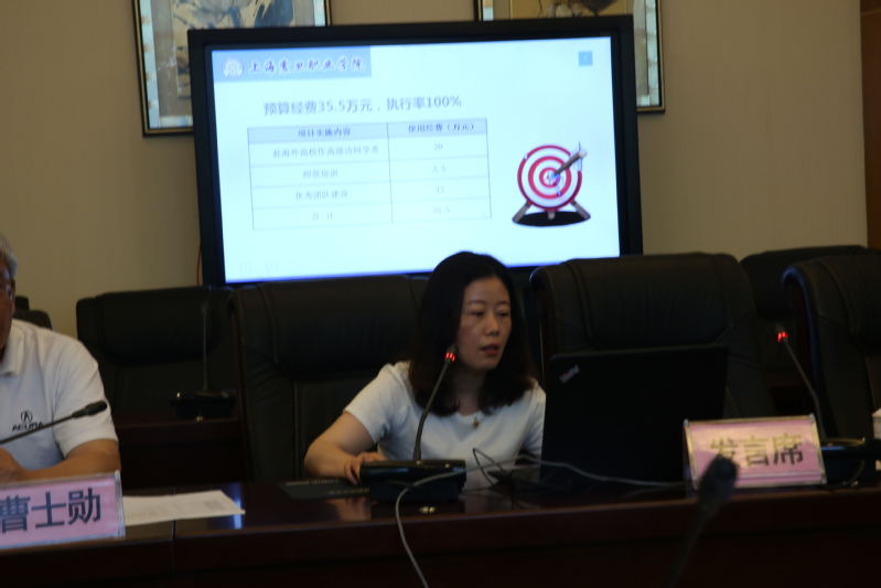 2018年5月17日,上海市交通職業(yè)技術(shù)學(xué)院院長徐輝、工藝美術(shù)職業(yè)學(xué)院副院長蔡紅、上海電機(jī)學(xué)院高職學(xué)院院長付曉剛、上海城建職業(yè)學(xué)院副院長郭洪濤、原應(yīng)用技術(shù)大學(xué)基建處處長張靜芬、上海市教育評估協(xié)會楊景濤、上海市教委財資中心副主任王紓?cè)唬瑏砦倚_M(jìn)行2017年專項資金項目結(jié)項檢查工作。校長陳力華、校長助理張佩莉、調(diào)研員曹士勛、財務(wù)處處長成耀、校辦主任張莉、校辦副主任廖文文以及專項資金項目負(fù)責(zé)人參加了結(jié)項工作檢查。