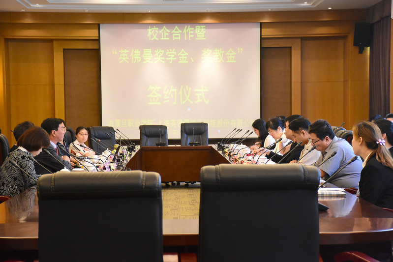 2018年5月28日,上海震旦職業(yè)學(xué)院與上海英佛曼納米科技股份有限公司獎(jiǎng)學(xué)金·獎(jiǎng)教金簽約儀式在我校召開(kāi)。上海市寶山區(qū)科委康銳主任、寶山區(qū)人社局董海主任參會(huì),上海震旦教育發(fā)展基金會(huì)理事長(zhǎng)張惠莉老師、上海震旦職業(yè)學(xué)院董事長(zhǎng)張沈老師、上海震旦職業(yè)學(xué)院陳力華校長(zhǎng)、校辦主任張莉、機(jī)電工程學(xué)院姚黎明院長(zhǎng)、校實(shí)踐辦葉素梅主任、校學(xué)生處毛燕靜處長(zhǎng),上海英佛曼納米科技股份有限公司總經(jīng)理田慶芬、田飛廠長(zhǎng)、鮑軍部長(zhǎng)、辦公室主任梁虹等,以及機(jī)電工程學(xué)院的師生代表參加會(huì)議。