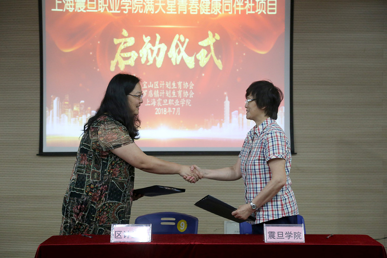 首先,校團(tuán)委書記曹曉莉向在場的領(lǐng)導(dǎo)和同學(xué)們介紹了滿天星青春健康同伴社項目的成立背景及本年度計劃。隨后,寶山區(qū)計生協(xié)會蘇玲會長同夏臻副書記簽署了項目合作協(xié)議書。羅店鎮(zhèn)副鎮(zhèn)長冉旭和公共衛(wèi)生與護(hù)理學(xué)院黨總支書記司曉晶共同為項目揭牌,寶山區(qū)計生協(xié)會秘書長金玉鳳將社旗授予滿天星青春健康同伴社首任社長宋紫嫣同學(xué)。在發(fā)言環(huán)節(jié),劉香同學(xué)代表全體志愿者發(fā)言,她表達(dá)了滿天星志愿者團(tuán)隊將致力于青春健康同伴教育,幫助青年人樹立負(fù)責(zé)任的生活態(tài)度的決心。上海震旦職業(yè)學(xué)院黨委副書記夏臻在發(fā)言中再次感謝了寶山區(qū)計劃生育協(xié)會和羅店鎮(zhèn)計劃生育協(xié)會對于此項目的大力支持,夏書記表示學(xué)院會根據(jù)項目計劃,有重點有特色地開展各項青春健康同伴教育活動,培養(yǎng)優(yōu)秀志愿者和師資團(tuán)隊,爭取結(jié)出豐碩的項目成果。最后,寶山區(qū)計劃生育協(xié)會蘇玲會長作總結(jié)講話,她結(jié)合多年青春健康教育工作經(jīng)驗,強調(diào)了青春健康同伴教育進(jìn)高校校園對于青年人成長和社會發(fā)展的重要意義,并對項目的開展提出了具體要求。蘇會長希望更多的志愿者能夠加入到滿天星同伴社來,關(guān)注青春健康,攜手相伴前行,共創(chuàng)美好未來。至此,上海震旦職業(yè)學(xué)院滿天星青春健康同伴社項目啟動儀式取得圓滿成功!