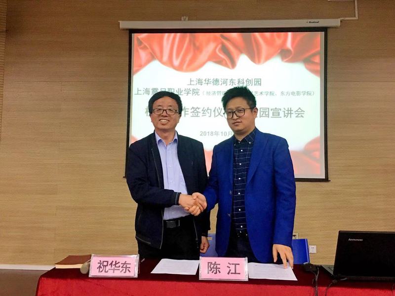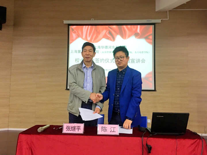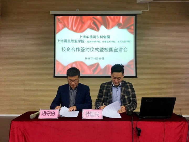 本次活動(dòng)由實(shí)踐教學(xué)辦公室主任葉素梅主持,經(jīng)濟(jì)管理學(xué)院胡守忠院長(zhǎng),傳媒藝術(shù)學(xué)院張繼平院長(zhǎng),東方電影學(xué)院祝華東副院長(zhǎng)及華德集團(tuán)陳江總裁,華德河?xùn)|科創(chuàng)園杜國(guó)興園長(zhǎng)等參加了活動(dòng)并現(xiàn)場(chǎng)簽訂合作協(xié)議。葉素梅主任代表學(xué)校授予華德科創(chuàng)園“上海震旦職業(yè)學(xué)院實(shí)訓(xùn)基地”銅牌。