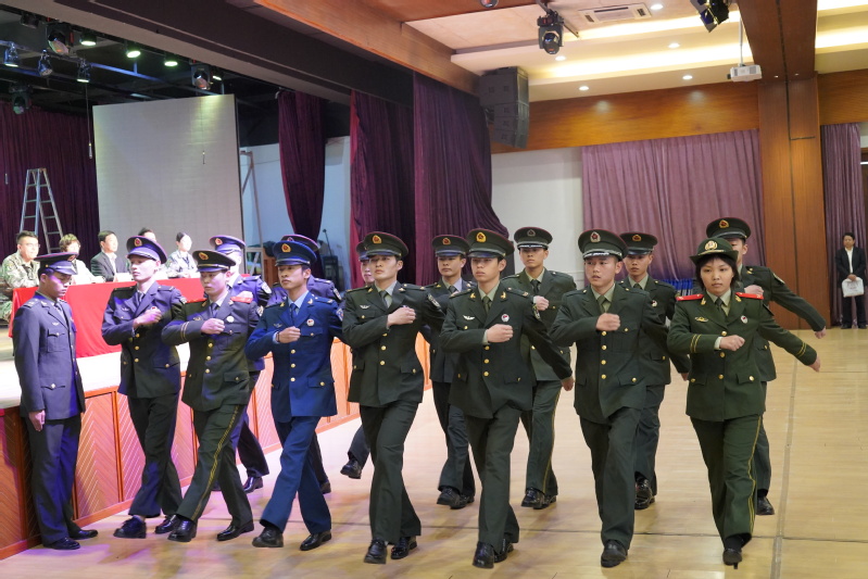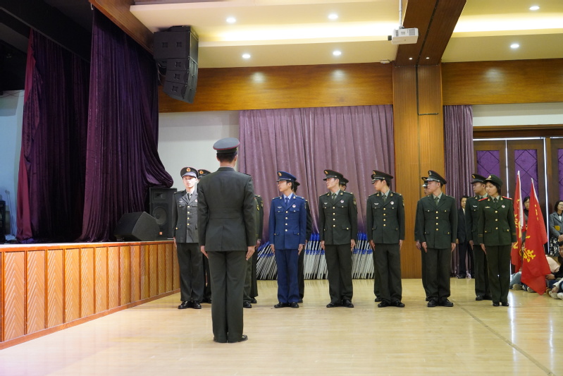 主持人徐磊老師宣布軍訓營開營式開始后,全體起立奏唱國歌。隨后,夏臻副書記宣讀了對本屆軍訓營營長張超、副營長鹿群、教導員徐磊的任命書。隨后,教官們向大家展示了基本的軍事技能,步伐一致、整齊劃一,學員們激動不已、掌聲不斷。值得一提的是,本屆軍訓營教官均來自各學院的優(yōu)秀退伍士兵,其中有多人在部隊受到嘉獎。之后,由夏臻書記向軍訓營授旗,營長張超莊重地接過軍旗并宣讀連長名單和訓練時間、地點。