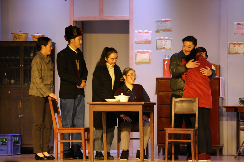 表演專業(yè)副主任宋藝?yán)蠋煋?dān)任該劇導(dǎo)演,通過仔細(xì)研究劇本和指導(dǎo)學(xué)生教學(xué)實踐,她對劇本也有了新的認(rèn)識,在舞臺上對故事進(jìn)行了新的詮釋,形成了具有特色的震旦版《大哥》。16級的學(xué)生均出生在上世紀(jì)90年代后期,要他們?nèi)パ堇[出生之前的故事,理解當(dāng)時人的行為與思想,并不是件簡單的事。宋藝?yán)蠋熢谂啪氝^程中,通過各種方法把學(xué)生帶入當(dāng)時的情境,一一為他們解釋劇中人的行動線索、心理邏輯、時代背景,慢慢讓學(xué)生們“入了戲”、“動了情”。