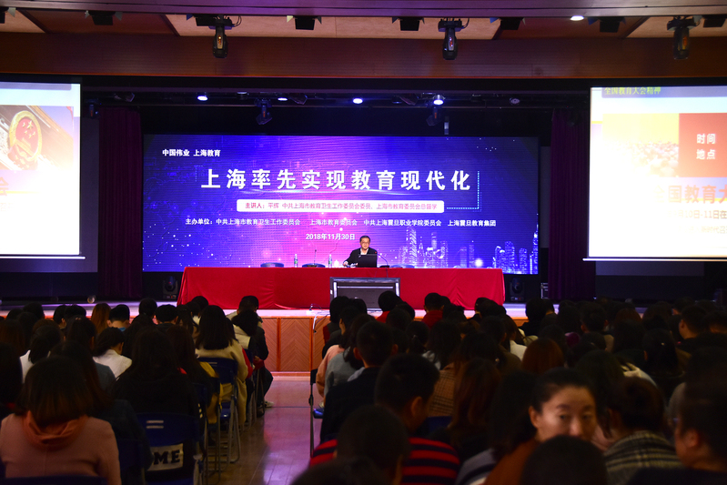 中共上海教育衛(wèi)生委員會、上海教育委員會為貫徹宣傳落實(shí)全國教育工作會議精神,組成講師團(tuán)到各高校巡講。平輝老師是講師團(tuán)成員之一。本次講座是我校貫徹落實(shí)全國教育工作會議,落實(shí)中共上海教育衛(wèi)生委員會、上海教育委員會宣傳全國教育工作會議精神宣講活動的舉措之一;也是我校《中國偉業(yè)》系列講座之一。