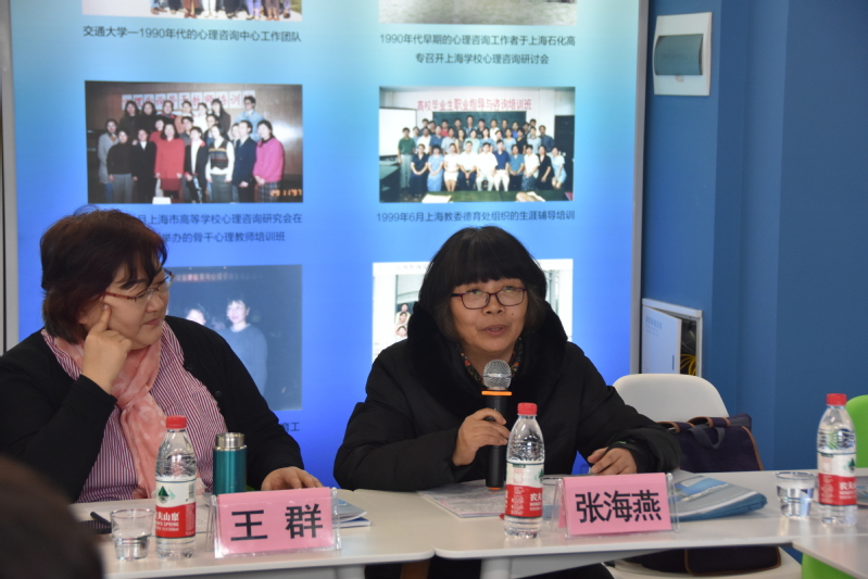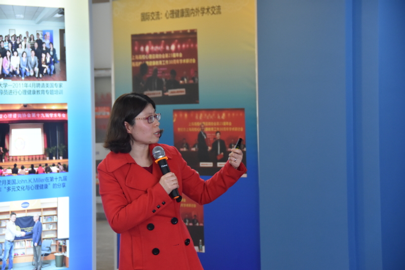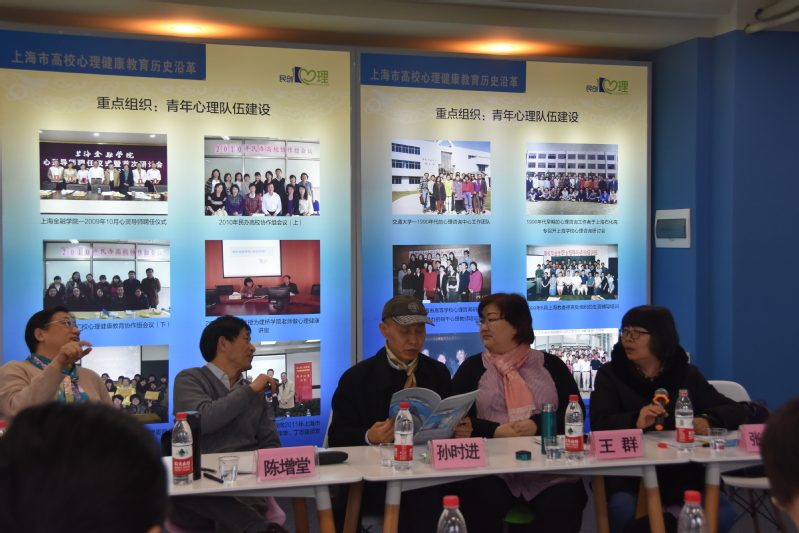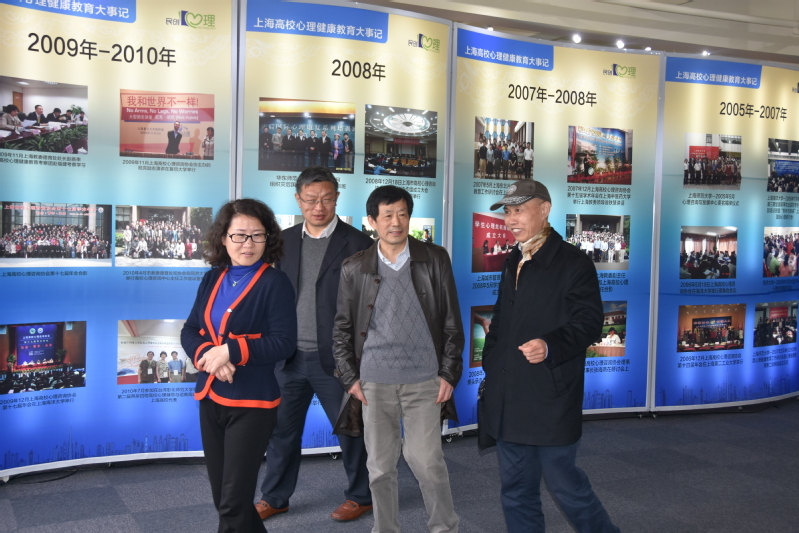 在高校心理咨詢協(xié)會會長陳增堂的陪伴下,專家們參觀了“基地”實訓(xùn)中心。會長陳增堂向各位高校的心理學(xué)專家詳細講述了上海高校心理健康教育的30年發(fā)展歷史。