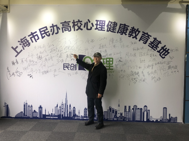 上海市學(xué)校高級心理咨詢師趙小青老師、復(fù)旦大學(xué)心理研究中心主任孫時進老師、上海交通大學(xué)顏世富老師、上海交通大學(xué)仰頤老師先后在基地簽名墻上簽名留念。