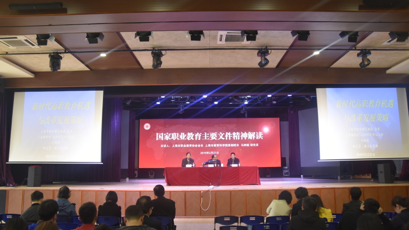 2019年3月27日下午,學(xué)校全體教職工在大禮堂進(jìn)行了2019年第一次全員培訓(xùn),邀請了上海市職業(yè)教育協(xié)會會長、上海教科院高職研究中心主任馬樹超教授做題為“新時代高職教育機(jī)遇與改革發(fā)展策略”的專題報告。