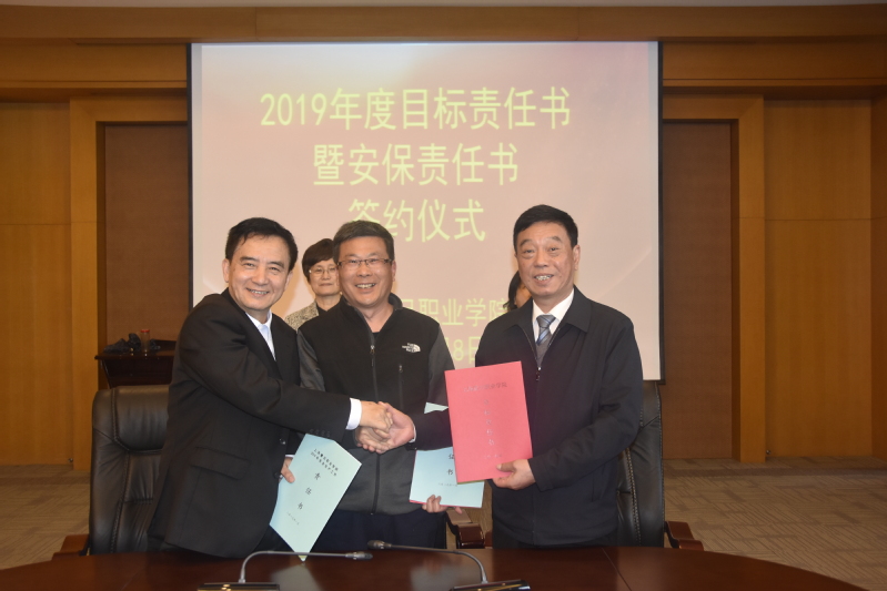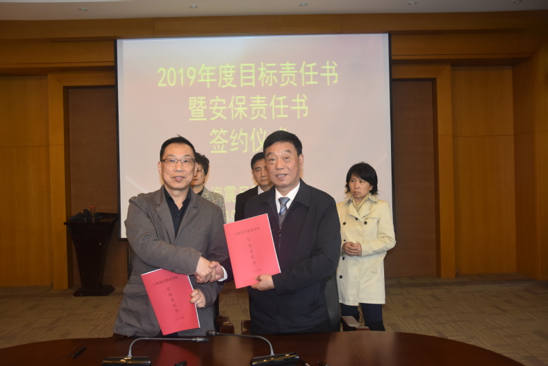 2019年4月8日,在我校體藝樓國(guó)際會(huì)議中心,舉行了“2019年度目標(biāo)責(zé)任書(shū)暨安保責(zé)任書(shū)簽約儀式”。校長(zhǎng)陳力華、黨委書(shū)記黃晞建、黨委副書(shū)記夏臻、副校長(zhǎng)王純玉等黨政領(lǐng)導(dǎo)出席了本次簽約儀式。人事處副處長(zhǎng)錢毅主持簽約儀式。