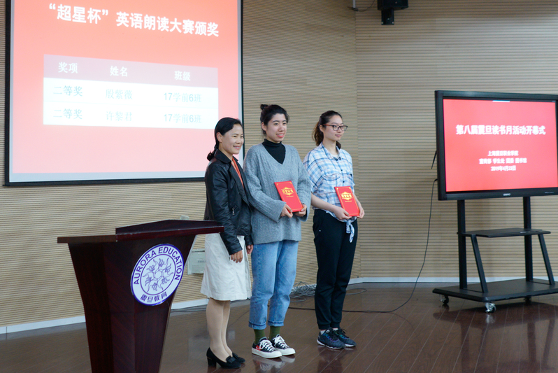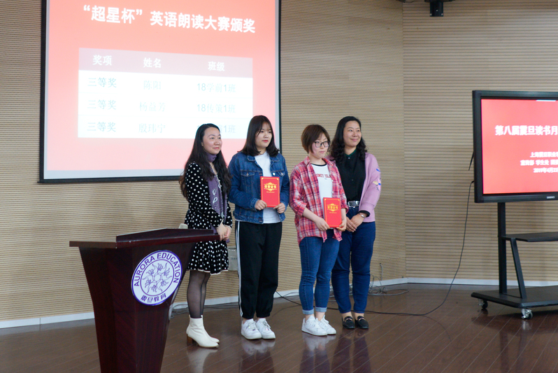張惠莉理事長、基礎(chǔ)部萬華主任等領(lǐng)導(dǎo)及嘉賓隨后分別為震旦學(xué)院“超星杯”英語朗讀大賽決賽中獲得一、二、三等獎的同學(xué)頒發(fā)獎狀和獎品。