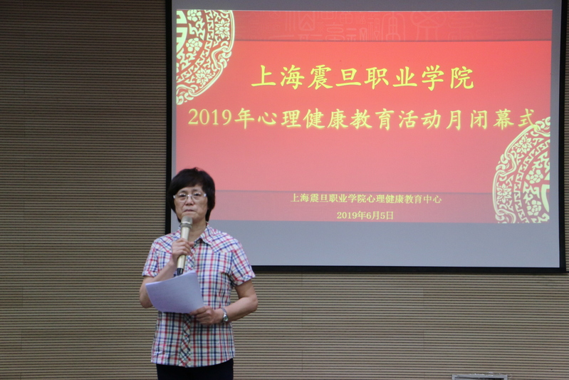閉幕式議程進(jìn)行第二項(xiàng),由上海震旦職業(yè)學(xué)院心理健康教育中心副主任武瑩瑩老師對(duì)2019年校級(jí)心理健康教育活動(dòng)月進(jìn)行了總結(jié)回顧。此次活動(dòng)月中,校心理健康教育中心共精心策劃組織了6場(chǎng)活動(dòng),參與人次達(dá)3500人次左右?;顒?dòng)包括如下:1.第四屆“心語(yǔ)杯”書(shū)法大賽2.第二屆陽(yáng)光心態(tài)-心理知識(shí)大賽 3.書(shū)香校園心理讀書(shū)分享會(huì)4.5月29日現(xiàn)場(chǎng)活動(dòng) 5.常規(guī)活動(dòng) 6.二級(jí)學(xué)院自策劃活動(dòng)