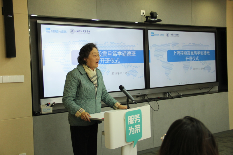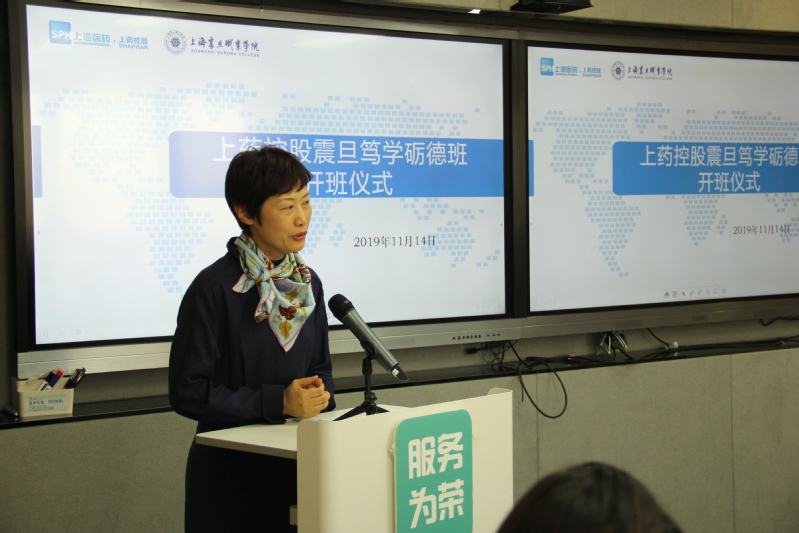 2019年11月14日篤學(xué)礪德定向班,在上藥控股舉行開班儀式, 震旦教育發(fā)展基金會理事長張惠莉、教務(wù)處長張瑩、實踐與實訓(xùn)主任葉素梅、公共衛(wèi)生與護理院長趙佩君、專業(yè)相關(guān)教師,以及篤學(xué)礪德班學(xué)員參加開班儀式。上藥控股有限公司副總經(jīng)理張燕、全國供應(yīng)鏈總經(jīng)理黃振宇、人力資源高級經(jīng)理丁義華等7人出席儀式。會議由丁義華主持,張燕總經(jīng)理、趙佩君院長分別致辭和講話,定向班學(xué)生代表葉微發(fā)言。