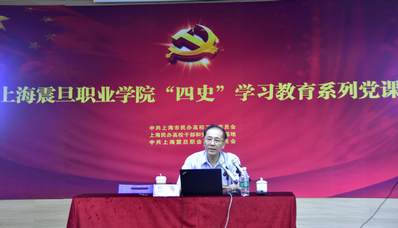 2020年7月10日下午13:00,上海震旦職業(yè)學(xué)院“四史”學(xué)習(xí)教育系列黨課在學(xué)校體藝樓小劇場開講。此次黨課邀請市“四史”宣講團(tuán)專家、上海市社聯(lián)副主席、上海市中共黨史學(xué)會會長忻平教授作《紀(jì)念上海解放七十周年》專題講座。本次專題學(xué)習(xí)由校黨委書記黃晞建主持,校長馮偉國、副校長王純玉等校領(lǐng)導(dǎo)以及全體黨員同志、入黨積極分子通過線下參與和線上觀看直播的形式參加了黨課學(xué)習(xí)。