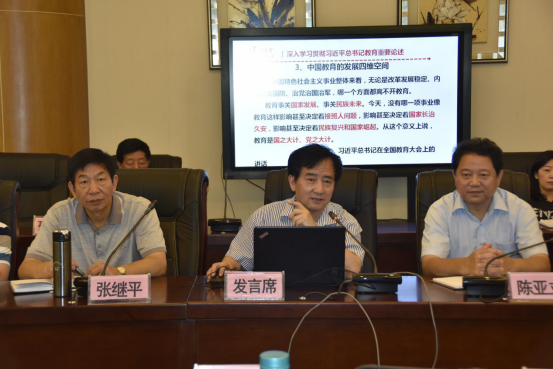 會(huì)上,黃晞建書記深入宣講了習(xí)近平總書記教育重要論述,并從戰(zhàn)略全局角度闡釋了“教育始終聯(lián)系中華民族偉大復(fù)興”的重要意義,強(qiáng)調(diào)當(dāng)今世界教育的基礎(chǔ)性、先導(dǎo)性、全局性地位和作用,從教育內(nèi)涵角度科學(xué)論述了教育改革發(fā)展的新理念新思想新觀點(diǎn),教師扎實(shí)學(xué)識(shí)、立德樹人的使命擔(dān)當(dāng),學(xué)生扎根人民、奉獻(xiàn)國(guó)家的理想信念,并對(duì)黨政負(fù)責(zé)干部提出了熟悉教育、關(guān)心教育、研究教育的要求。