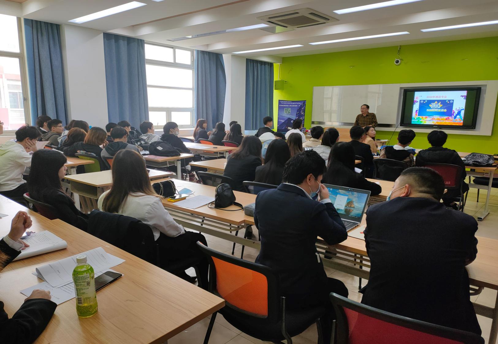 上海外灘茂悅大酒店和上海美蘭湖酒店也各自通過(guò)播放宣傳視頻、PPT展示、面對(duì)面交流等方式向同學(xué)們介紹了公司的概況、職業(yè)發(fā)展方向、人員需求以及選擇該單位的理由,并展示了可提供的實(shí)習(xí)崗位。上海靜安洲際酒店委托我院包一芳老師對(duì)其酒店?duì)顩r、客房規(guī)模以及實(shí)習(xí)崗位等內(nèi)容做了相關(guān)介紹。