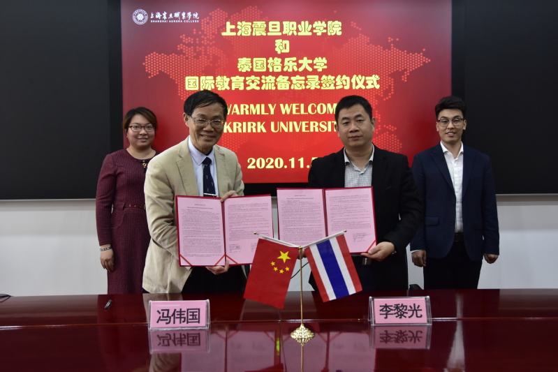 2020年11月5日,泰國格樂大學(xué)管理委員會委員李黎光博士、上海·浙江國際事務(wù)中心主任張超一行三人到訪上海震旦職業(yè)學(xué)院。我校校長馮偉國博士及國際交流處熱情接待了到訪來賓。雙方就兩校今后在震旦開展專升本、專升碩等留學(xué)升學(xué)途徑等問題進(jìn)行了探討。