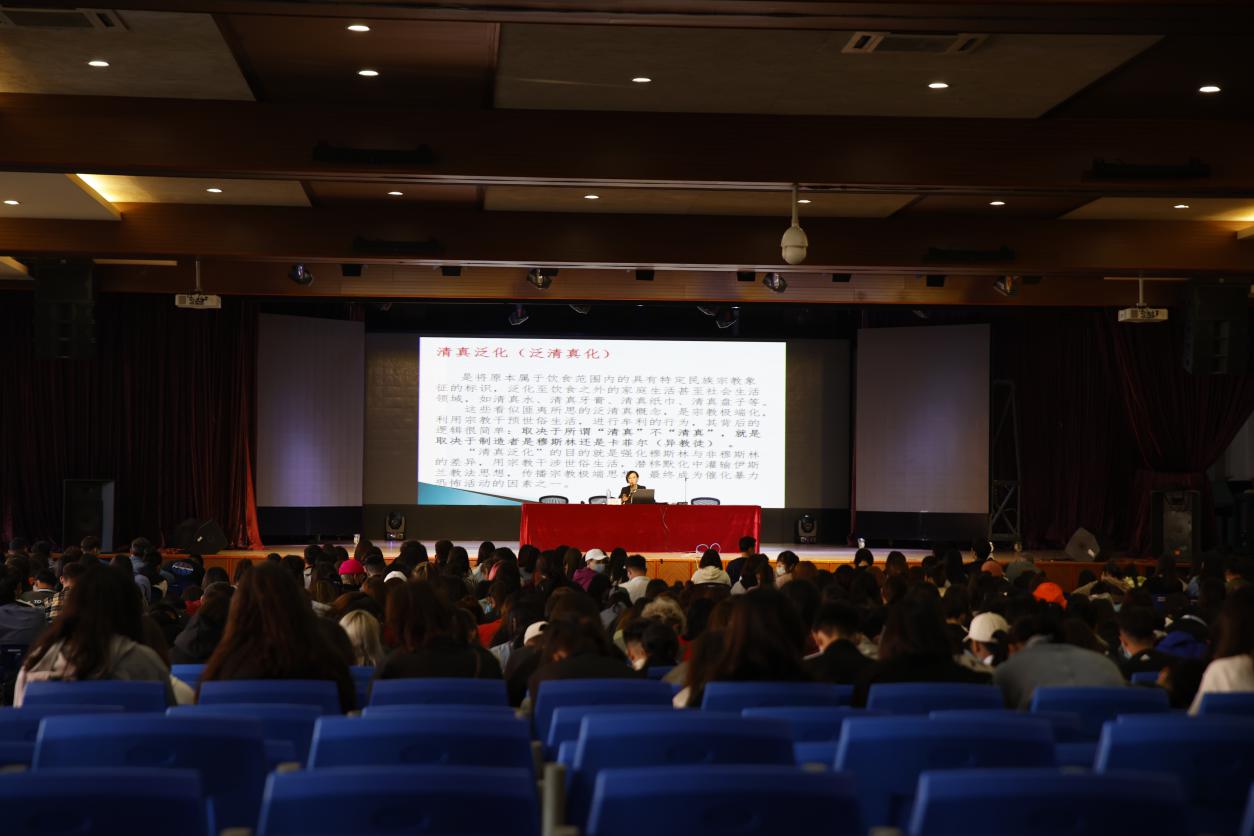 此次講座深刻揭露和批判了“三股勢(shì)力”的險(xiǎn)惡用心和宗教極端思想的現(xiàn)實(shí)危害,使我校少數(shù)民族學(xué)生對(duì)宗教極端主義有了更清醒的認(rèn)識(shí),對(duì)自覺維護(hù)民族團(tuán)結(jié)有了更全面的思考,對(duì)做合格大學(xué)生有了更堅(jiān)定的決心。