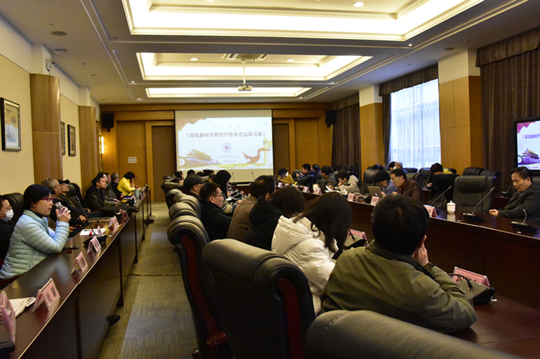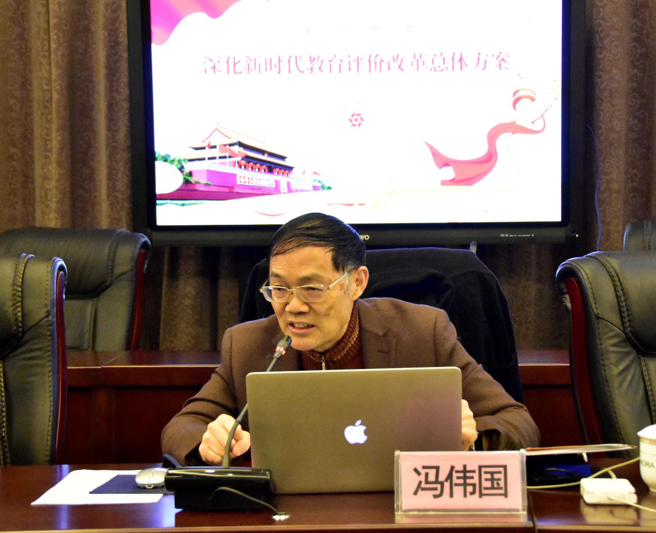 馮偉國(guó)校長(zhǎng)傳達(dá)了中共中央、國(guó)務(wù)院印發(fā)《深化新時(shí)代教育評(píng)價(jià)改革總體方案》精神,從《總體方案》總體要求、重點(diǎn)任務(wù)、組織實(shí)施三個(gè)方面介紹了主要內(nèi)容?!犊傮w方案》堅(jiān)持以立德樹人為主線,以破“五唯”為導(dǎo)向,以五類主體為抓手。全體中層干部要以新時(shí)代中國(guó)特色社會(huì)主義思想為指導(dǎo),切實(shí)學(xué)習(xí)貫徹《總體方案》精神。各部門、二級(jí)學(xué)院要認(rèn)真展開討論,推進(jìn)教育評(píng)價(jià)改革。