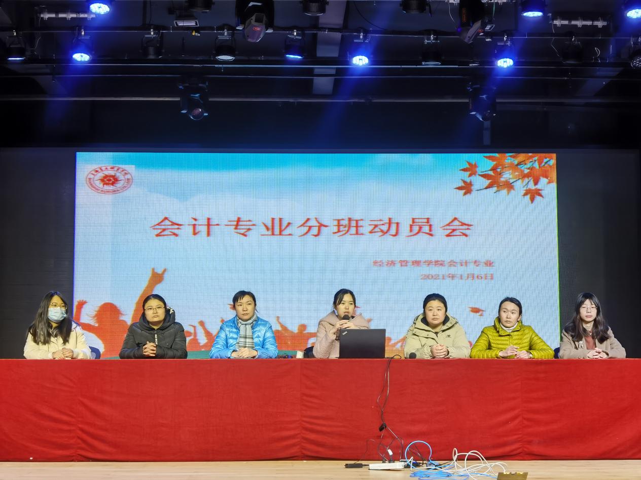 2021年1月6日,經(jīng)濟(jì)管理學(xué)院會計專業(yè)召開了會計專業(yè)分班教學(xué)動員會。此次分班是為了響應(yīng)職業(yè)教育“1+X”證書制度,提高初級會計師考試通過率,提高學(xué)生學(xué)習(xí)熱情,加強(qiáng)會計專業(yè)建設(shè)。會上,學(xué)生認(rèn)真聽專業(yè)老師講解,會后又與老師進(jìn)行了深入的溝通交流,學(xué)習(xí)積極性高漲,動員大會獲得圓滿成功。