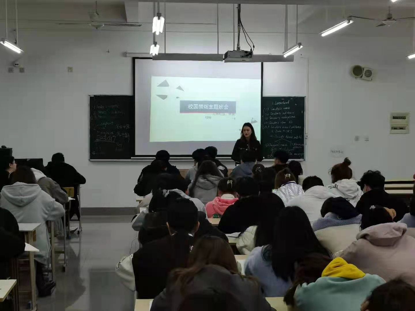 各班級紛紛開展禁煙教育主題班會,輔導(dǎo)員老師向全體同學(xué)介紹吸煙的危害性,引導(dǎo)和告誡青年學(xué)生要遠離煙草,并強調(diào)嚴禁學(xué)生在公共場所抽煙,同時傳達了學(xué)校關(guān)于禁煙的有關(guān)規(guī)定。