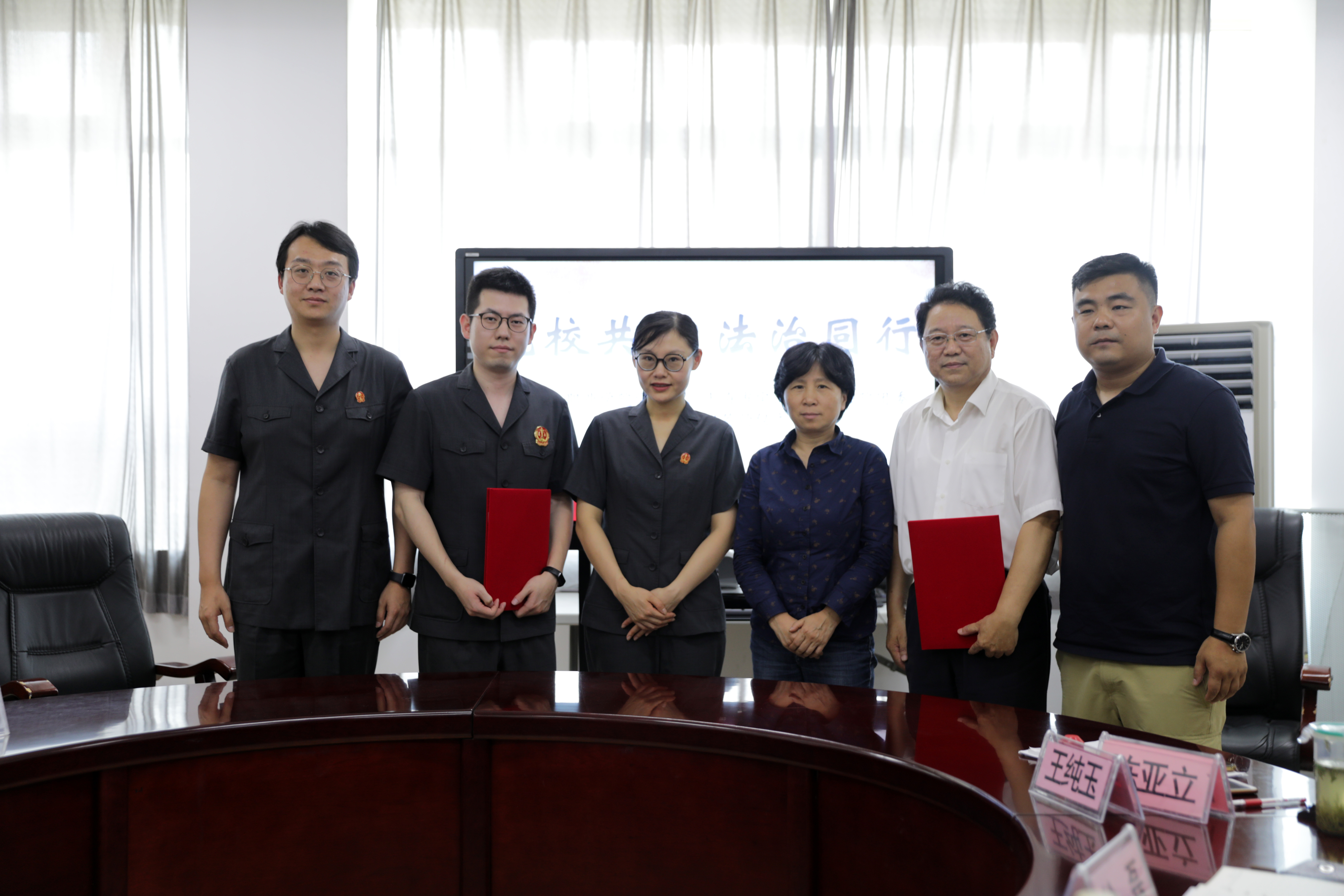 會上,王校長強調(diào),法治共建形式很好,共建內(nèi)容包括但不限于上述內(nèi)容。我們不僅對學生舉案說法、開展法律知識競賽,也要對輔導員進行法律培訓,還要納入新生入學教育中,要讓學生們知道哪些能做、哪些不能做、哪些應當怎么做。雙方把共建工作落細、落實、落到位。