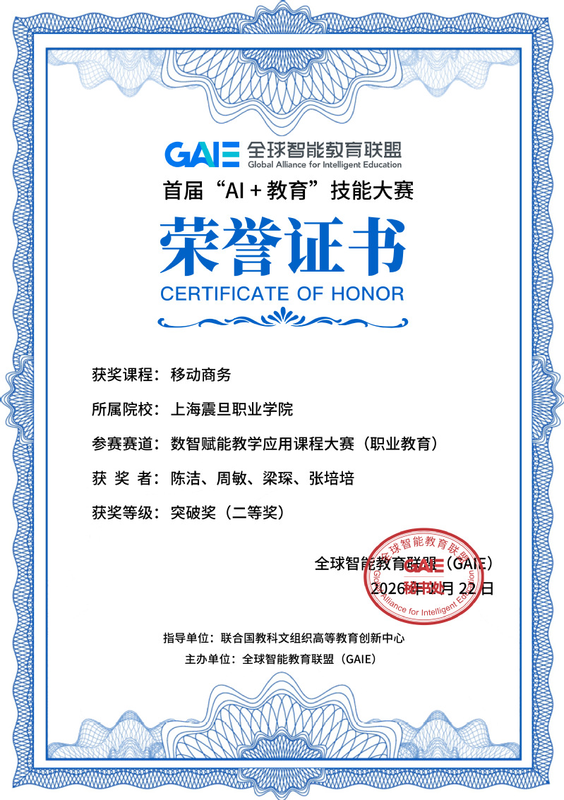 近日,由聯(lián)合國(guó)教科文組織高等教育創(chuàng)新中心指導(dǎo)、全球智能教育聯(lián)盟(GAIE)主辦的首屆GAIE“AI+教育”技能大賽決賽圓滿落幕,我校經(jīng)濟(jì)管理學(xué)院陳潔、周敏、梁琛、張培培團(tuán)隊(duì)的《移動(dòng)商務(wù)》課程在“數(shù)智賦能教學(xué)應(yīng)用課程大賽”中脫穎而出,榮獲職業(yè)教育組突破獎(jiǎng)(二等獎(jiǎng)),充分彰顯了學(xué)校在數(shù)字化教學(xué)改革與高水平專業(yè)建設(shè)方面的突出成效。