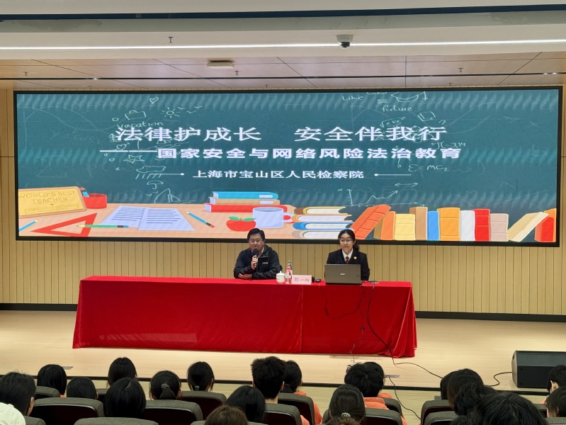 為進(jìn)一步提升學(xué)生的安全意識,增強(qiáng)法治觀念,4月14日,學(xué)校特邀寶山區(qū)檢察院檢察官郭一楊作《國家安全與網(wǎng)絡(luò)風(fēng)險(xiǎn)法治教育》專題講座,各二級學(xué)院學(xué)生代表聆聽了講座?;顒?dòng)由學(xué)生處副處長閔亮主持。
