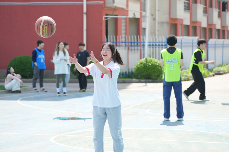 室外籃球場上,三分球投籃比賽緊張刺激。選手們屏息凝神、瞄準籃筐,一道道優(yōu)美的弧線劃出青春的軌跡,每一次進球都引來現(xiàn)場陣陣歡呼。