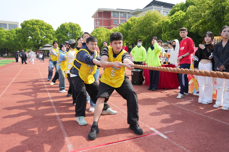 操場跑道旁,師生拔河比賽將現(xiàn)場氛圍推向高潮。隨著裁判哨聲響起,參賽隊員們緊握長繩、齊心協(xié)力,現(xiàn)場師生的加油聲、吶喊聲此起彼伏,師生并肩作戰(zhàn),在團隊協(xié)作中拉近了彼此的距離,展現(xiàn)了師生同心、勇爭先鋒的熱血與擔(dān)當(dāng)。