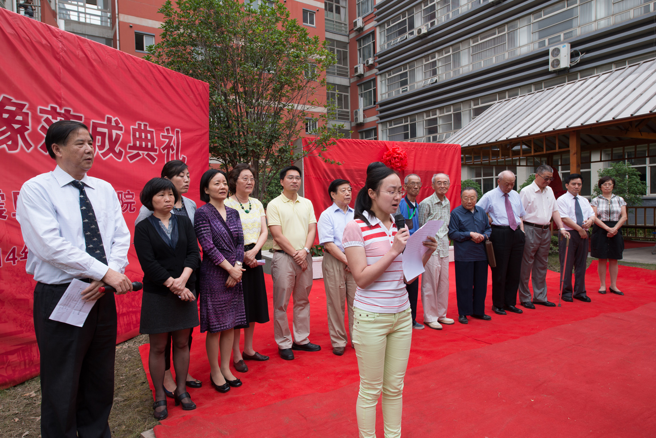 緊接著,杜飛龍院長和黃晞建書記為校訓揭幕,王振義院士和張惠莉董事長為“馬相伯”銅像揭幕。