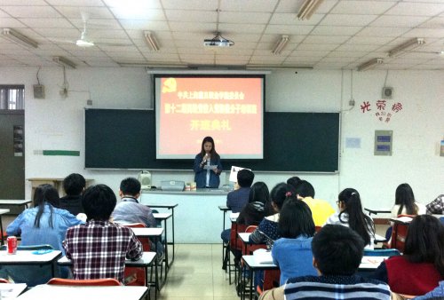 為做好新黨員發(fā)展工作,加強(qiáng)入黨積極分子的培養(yǎng)教育,上海 震旦職業(yè)學(xué)院第十二期高級(jí)黨校培訓(xùn)班開班典禮于 10 月 16 日在 1 號(hào)樓 409 教室隆重舉行。 來自各二級(jí)學(xué) 院的黨總支(支部)書記出席了開班典禮, 在雄壯的國歌聲中,開班典禮正式開始。