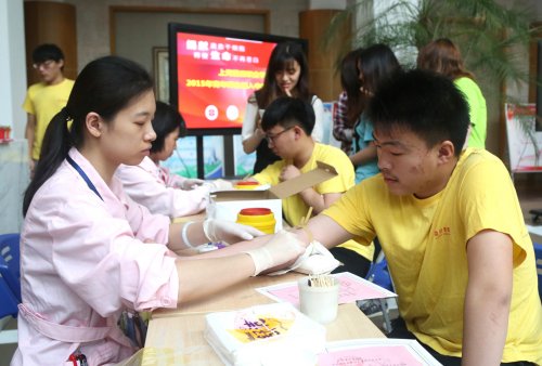 5月15日上午10點至下午1點30分,我院在體藝樓舉行了造血干細(xì)胞采集樣本活動??傆嫻灿?/span>222名師生接受血樣采集,成為捐贈造血干細(xì)胞志愿者,同時也成為中國造血干細(xì)胞捐贈者資料庫的新成員。幾張兩平方米海報“上海青年造血干細(xì)胞捐獻(xiàn)集中活動”分布現(xiàn)場,為現(xiàn)場增添莊重而不失活潑的氣氛。