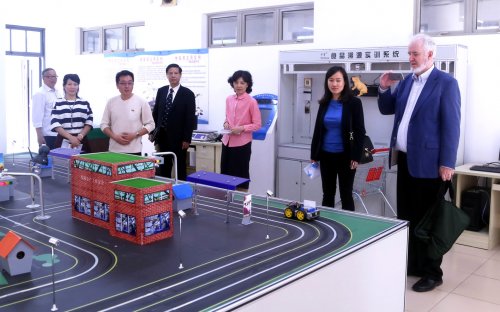 期間Dr. Donaldson教授還參觀了我院的校園環(huán)境、物聯(lián)網(wǎng)技術(shù)專業(yè)實訓(xùn)室和機(jī)電一體化實訓(xùn)室等多個實訓(xùn)中心,并給予了高度評價,表示希望與我院建立長期的合作關(guān)系。張惠莉董事長表示,物聯(lián)網(wǎng)專業(yè)只是與美國加州浸會大學(xué)合作的開始,今后我院國際交流學(xué)院將與CBU繼續(xù)開展深度合作,探索“3+2”或“3+1+1”等多種合作模式。震旦學(xué)生到與我院合作的大學(xué)去深造,合作院校學(xué)生來震旦訪學(xué)將成為常態(tài)。