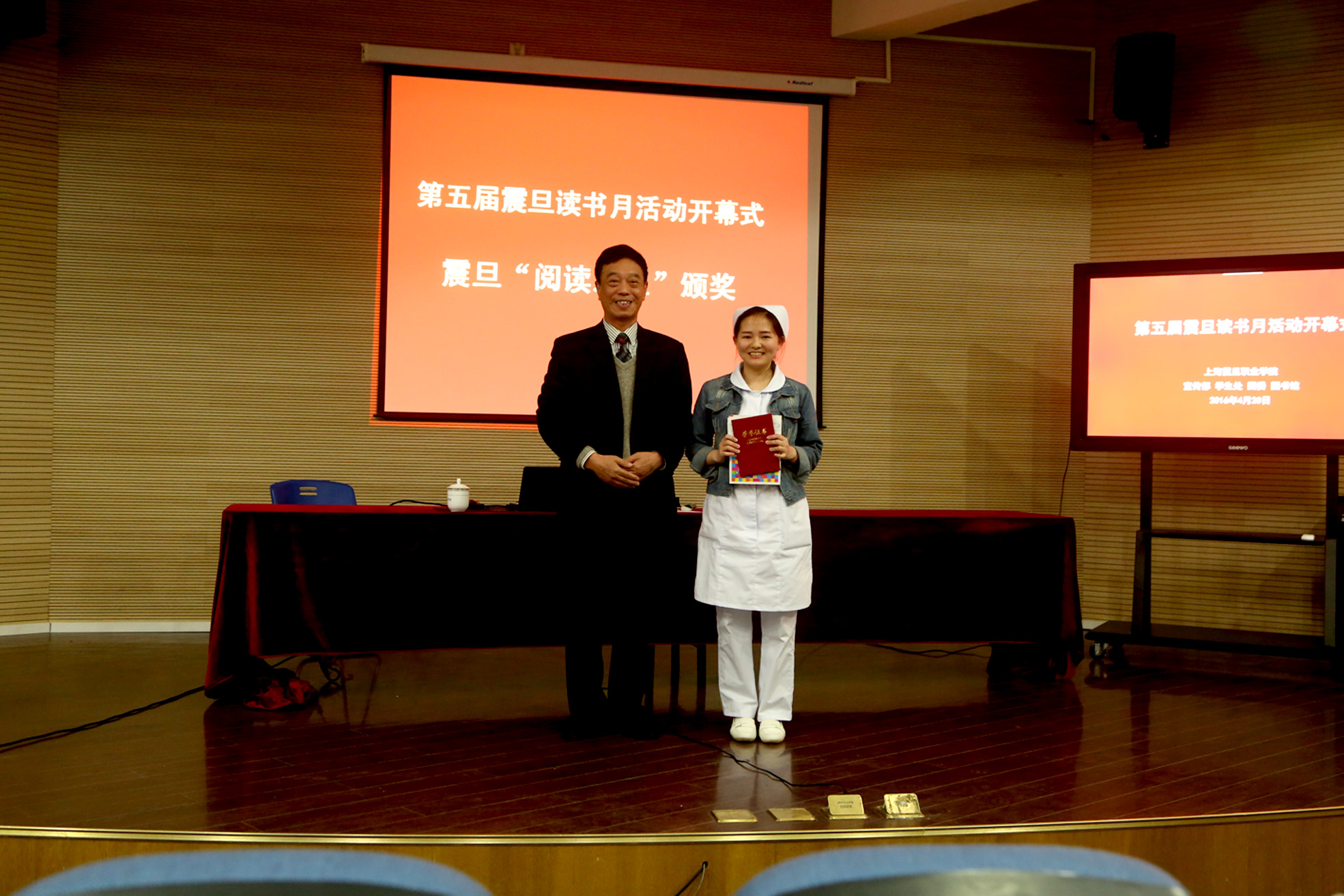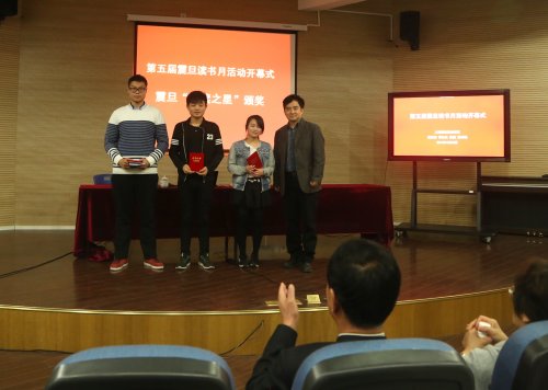 隨后,主持人宣布了獲得第五屆震旦讀書月“閱讀之星”的同學(xué)名單,院領(lǐng)導(dǎo)分別為獲得各獎項的同學(xué)進(jìn)行了頒獎。