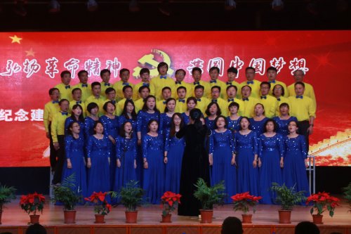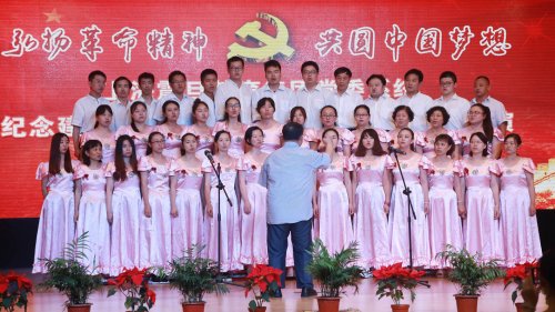 表彰大會在莊重的國際歌中結(jié)束,弘揚革命精神·共圓中國夢想”合唱展演活動開始。