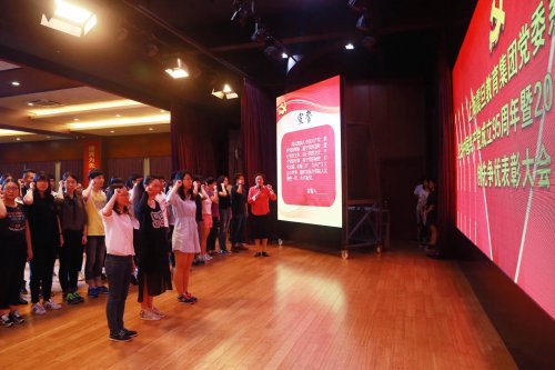 黨委委員、震旦教育發(fā)展基金會張惠莉理事長帶領(lǐng)61名新黨員在黨旗下宣誓
