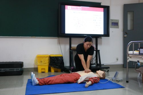 來自羅店醫(yī)院、羅店鎮(zhèn)社區(qū)服務中心等單位的老師們在8個課時的培訓時間內(nèi),為同學們現(xiàn)場講解了救護概念并且演示了遭遇突發(fā)事故的救護方式:如何在搶救的黃金時間內(nèi)給生命垂危的病人實施心肺復蘇?,F(xiàn)場的氣氛非?;钴S,大家躍躍欲試,對模擬演示表現(xiàn)出了濃厚興趣。在老師們的幫助指導之下,以模擬人為道具,同學們在實際動手操作中學會了胸外按壓和人工呼吸這一搶救方法。
