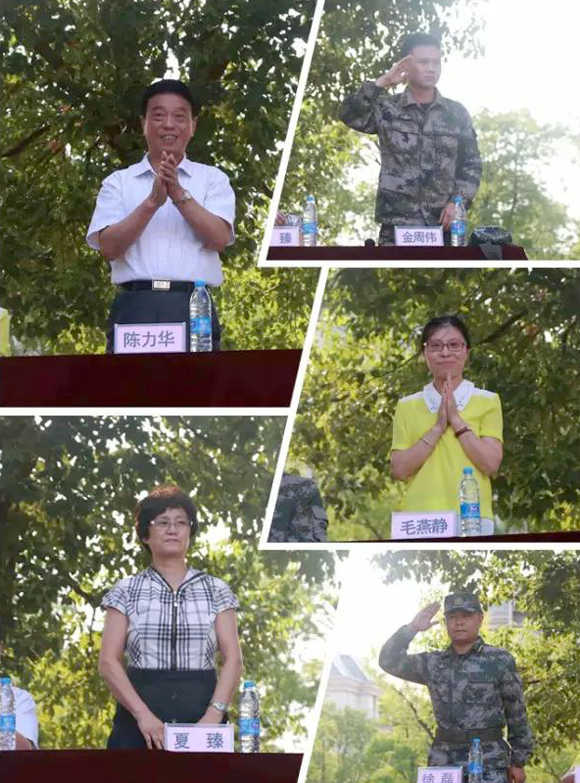 新生代表張伯睿同學(xué)和教師代表相萍萍老師分別發(fā)言。張伯睿同學(xué)代表全體新生向?qū)W校、教官和老師保證:一要服從命令,聽(tīng)從指揮;二要學(xué)習(xí)解放軍的好思想、好作風(fēng)、好品質(zhì);三要樹(shù)立集體觀念,自覺(jué)搞好宿舍內(nèi)務(wù)衛(wèi)生。他還代表全體新生表示:一定要以教官為榜樣,發(fā)揚(yáng)艱苦奮斗、頑強(qiáng)拼搏的精神,要出色地完成軍訓(xùn)任務(wù),以優(yōu)異的成績(jī)向?qū)W校、教官、老師和家長(zhǎng)交上一份滿意的答卷。相萍萍老師代表全體帶隊(duì)老師希望全體新生在為期十天的軍訓(xùn)中,要克服苦和累,要迎接大學(xué)生活的第一場(chǎng)考驗(yàn),并要以飽滿的熱情、鋼鐵的意志,積極勇敢地迎接挑戰(zhàn)!她還代表全體帶隊(duì)老師表示:在整個(gè)軍訓(xùn)期間,全體帶隊(duì)老師將和同學(xué)們一起迎接風(fēng)雨,并肩作戰(zhàn),共同去奪取軍訓(xùn)的圓滿成功。