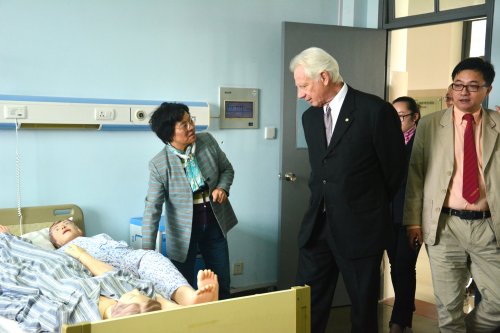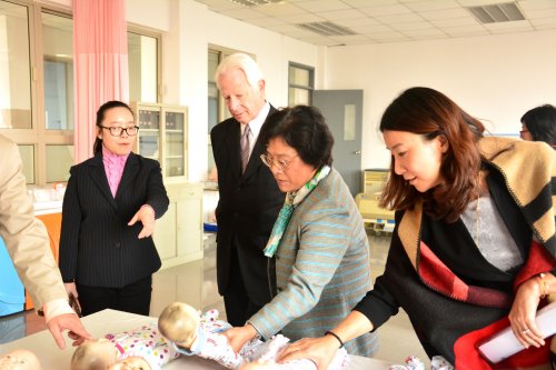 下午,在公共衛(wèi)生與護(hù)理學(xué)院專業(yè)主任吳景芳老師及實(shí)踐辦主任葉素梅老師的陪同講解下,Dr.Walker一行饒有興致地參觀了二級學(xué)院的各個實(shí)訓(xùn)室,并與院長陳力華、調(diào)研員曹士勛等相關(guān)人員進(jìn)行了深入溝通與探討。