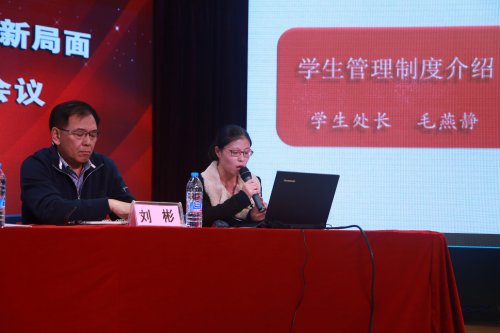 會(huì)議由學(xué)生處處長毛燕靜介紹了校學(xué)生管理制度體系和輔導(dǎo)員管理制度體系;黨委副書記夏臻作主題報(bào)告;院長陳力華作重要講話。