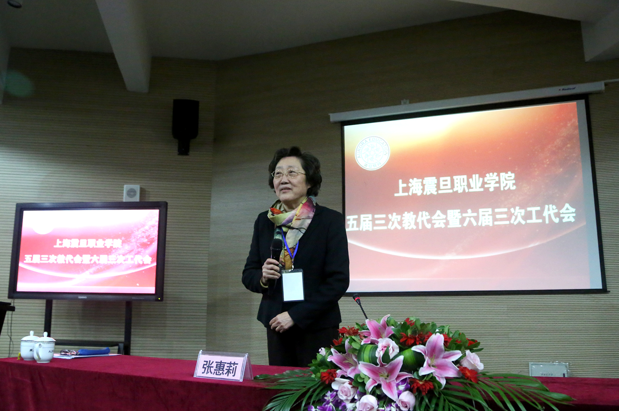 2017年1月9日,上海震旦職業(yè)學(xué)院召開五屆三次教代會暨六屆三次工代會。震旦教育發(fā)展基金會理事長張惠莉、震旦教育集團(tuán)董事長張沈;震旦學(xué)院黨委書記黃晞建、院長陳力華,黨委副書記、工會主席夏臻,副院長劉彬、王純玉等院領(lǐng)導(dǎo)出席會議,本次會議正式代表65名,列席代表29名。