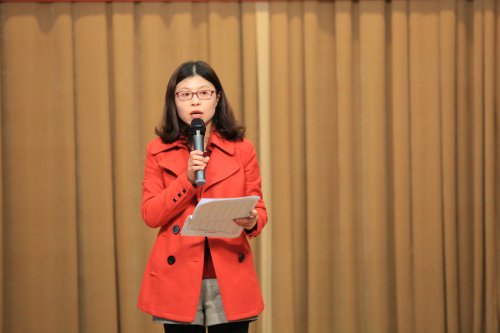 上海震旦職業(yè)學(xué)院學(xué)工部部長毛燕靜代表三八紅旗集體發(fā)言。