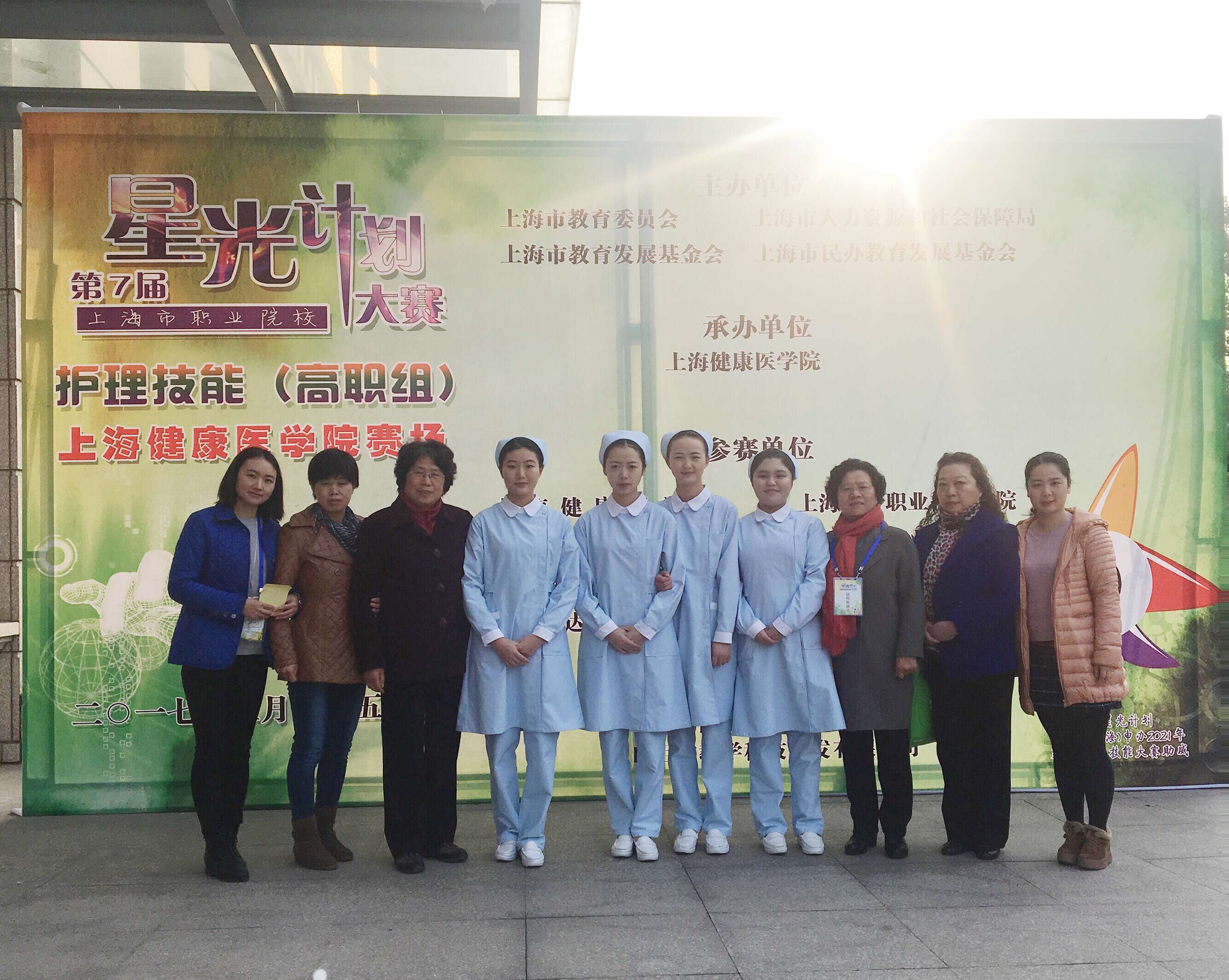 3月25日,第七屆上海星光杯護理技能(高職組)比賽在上海健康醫(yī)學院隆重舉行。我校公共衛(wèi)生與護理學院2015級楊懿、王文婷、黃鈺菁、丁穎菁4位同學參加了此次比賽,公共衛(wèi)生與護理學院趙佩君院長、實踐辦主任葉素梅老師和護理專業(yè)主任吳景芳老師親自帶隊,指導老師楊玉亭、朱成慧、黃歡老師全程陪同,給予參賽選手莫大的鼓舞和信心。