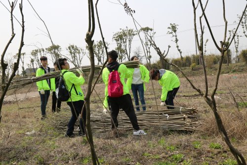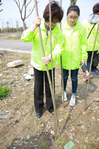 志愿者們在校團(tuán)委書記曹曉莉老師的帶領(lǐng)下,來到聞道園開始了本次的植樹活動(dòng)。隨著溫度的升高,晶瑩的汗水漸漸爬上了志愿者的額頭,但這絲毫不減大家勞動(dòng)的熱情。大家分工協(xié)作,手握工具,抗苗散苗,揮鍬鏟土,扶苗平土,每個(gè)環(huán)節(jié)都踏實(shí)認(rèn)真,忙的熱火朝天。經(jīng)過一上午緊張的勞動(dòng),5000棵樹苗整整齊齊地在聞道園“安家落戶”,為河畔添上一片新綠,使寶山多一抹色彩。