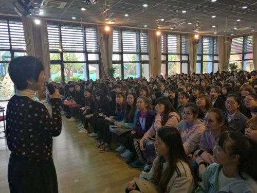 最后,師生們有序進入園內(nèi)多功能廳,聽取了中福會幼兒園組織的“幼兒園一日生活組織安排”專題講座。在鳳煒園長致簡短的歡迎詞后,副園長董炎老師向我院師生介紹了二期課改后的幼兒園一日活動安排和相應(yīng)的園內(nèi)設(shè)計,并重點介紹運動板塊在保證幼兒安全的同時進行創(chuàng)新的項目及配套設(shè)施,不禁讓人耳目一新,豁然開朗。此外,為達到幼兒基本動作發(fā)展、身體素質(zhì)、運動核心經(jīng)驗等教學預期目標,老師們所做的相應(yīng)教學設(shè)計等工作,讓我院師生受益匪淺。講座結(jié)束后,董炎園長對我院本次的觀摩活動的組織安排及現(xiàn)場協(xié)調(diào)工作給予了高度的肯定,并向我院學生表達了為幼兒教育事業(yè)共同奮斗的美好期望和祝愿。我院錢源偉院長也對中福會幼兒園為此次活動所做的接待與配合表示了誠摯感謝,并期待日后有更多的專業(yè)合作。