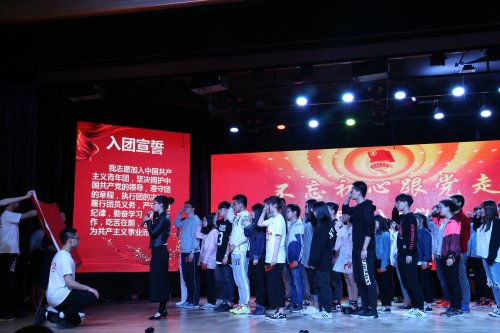 表彰大會(huì)之后則是“不忘初心跟黨走”新團(tuán)員入團(tuán)儀式,今年5月共有57名新團(tuán)員加入了中國(guó)共青團(tuán)這個(gè)溫暖的大家庭,為團(tuán)組織注入了新鮮的血液。在二級(jí)學(xué)院團(tuán)總支書(shū)記為新團(tuán)員代表頒發(fā)團(tuán)員證、佩戴團(tuán)徽后,全體新團(tuán)員在校團(tuán)委副書(shū)記邵慧老師的帶領(lǐng)下,面向團(tuán)旗莊嚴(yán)宣誓,同時(shí)老團(tuán)員一起重溫入團(tuán)誓詞。入團(tuán)儀式在全體團(tuán)員起立共唱共青團(tuán)團(tuán)歌中結(jié)束。
